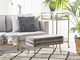 Osviežte svoj obývací priestor touto lavičkou s úložným priestorom. Zamatové čalúnenie v sivej farbe bude ladiť s rôznymi štýlmi zariadenia. Horizontálne prešívanie dodáva dizajnu taburetky jedinečný vzhľad. Vďaka svojej veľkosti je táto lavička multifunkčná a možno ju použiť ako podnožku alebo dodatočné miesto na sedenie v obývacej izbe, ale aj ako úložný priestor. Priestranná priehradka umožňuje odkladanie menších vankúšov, prikrývok a ďalších drobností.