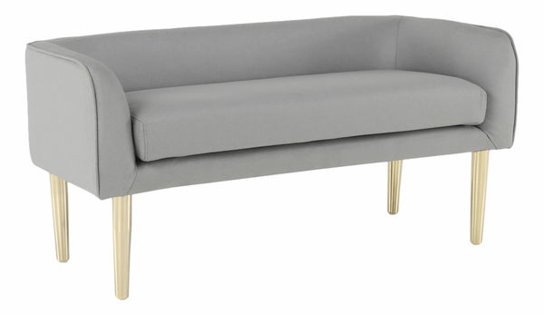 Lavička Helea (svetlosivá) s výškou 59 cm a hĺbkou 60 cm je ideálna pre váš interiér. Čalúnenie z látky v svetlosivej farbe a nohy z chrómu v zlatej farbe dodajú miestnosti moderný vzhľad. Výška sedu je 50 cm a hĺbka sedu 45 cm, čo zaručuje pohodlné posedenie. Rozmery lavičky sú 127x60x59 cm. Dodáva sa v demonte s penovou výplňou z vysokokvalitného molitanu. Objednajte si teraz a získajte moderný nábytok pre váš domov.