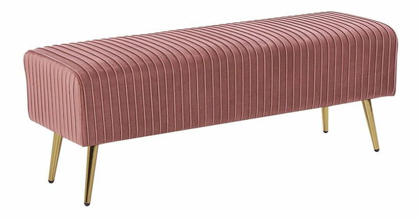 Funkčná a elegantná lavička vnesie do každého interiéru nádych štýlu glamour. Očarí vás nielen elegantným dizajnom, ale aj kvalitným spracovaním a jemným zamatovým čalúnením s výraznou štruktúrou, ktoré dokonale ladí so zlatými kovovými nohami. Lavička výborne poslúži ako podnožka, lavička k posteli alebo ďalšie miesto na sedenie, vďaka čomu je ideálna do obývacej izby, spálne aj predsiene.