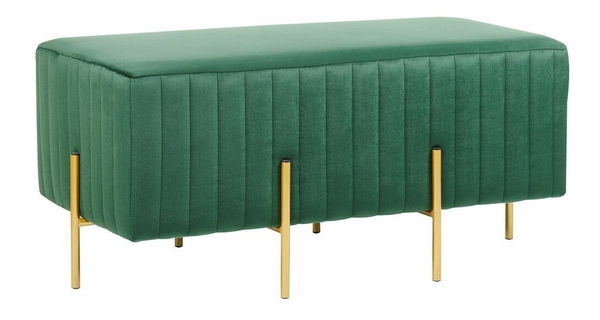 Táto čalúnená lavička je elegantným a veľmi štýlovým doplnkom, ktorý vnesie nádych luxusu do každého interiéru. Bohatú textúru zamatu krásne zvýrazňuje vertikálne prešívanie, ktoré dodáva dizajnu lavičky očarujúci vzhľad. Vďaka univerzálnemu obdĺžnikovému tvaru ju možno použiť v predsieni, obývacej izbe alebo pri nohách postele. Lavička vyzerá fantasticky ako samostatný dizajnový prvok a je vhodným doplnkom do interiérov zariadených v eklektickom a glamour štýle.
