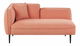 Táto elegantná leňoška je skvelým kusom nábytku pre všetkých nadšencov moderného dizajnu. Perfektne sa hodí do každej obývačky, spálne alebo predsiene. Je čalúnená jemnou buklé tkaninou s jedinečnou textúrou v broskyňovom odtieni ružovej a je doplnená malým vankúšom. Štýlový vzhľad tejto leňošky zdôrazňujú jej štíhle kovové nohy. Je ideálna na popoludňajší spánok a stane sa dekoratívnym doplnkom, ktorý zútulní váš interiér.