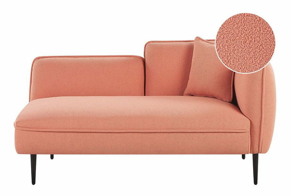Táto elegantná leňoška je skvelým kusom nábytku pre všetkých nadšencov moderného dizajnu. Perfektne sa hodí do každej obývačky, spálne alebo predsiene. Je čalúnená jemnou buklé tkaninou s jedinečnou textúrou v broskyňovom odtieni ružovej a je doplnená malým vankúšom. Štýlový vzhľad tejto leňošky zdôrazňujú jej štíhle kovové nohy. Je ideálna na popoludňajší spánok a stane sa dekoratívnym doplnkom, ktorý zútulní váš interiér.