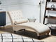 Elegantná, štýlová a luxusná leňoška vo vintage štýle sa v okamihu stane stredobodom každej miestnosti. Ladnú siluetu zvýrazňuje zaoblené operadlo v štýle Chesterfield. Nádherné béžové zamatové čalúnenie je doplnené ozdobnými gombíkmi a nohami z kaučukového dreva v prírodnom drevenom prevedení. Vďaka hrubej vrstve penovej výplne a malému vankúšu ponúka výnimočný pocit pohodlia.