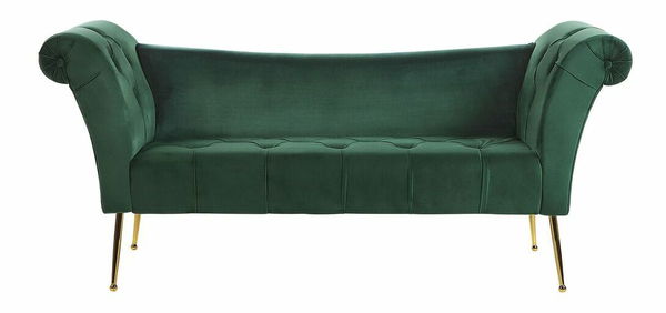 Táto luxusná leňoška vnesie do vašej obývačky eleganciu. Vďaka tvaru so zaobleným operadlom a bočnými opierkami sa perfektne hodí do elegantnej obývačky alebo luxusne zariadenej spálne. Prešívané zamatové čalúnenie krásne ladí so zlatými nohami v retro štýle. Dizajn s bočnými opierkami na oboch stranách vám umožní pohodlný oddych. Leňošku možno použiť ako pohodlné kreslo alebo ako dekoratívny dizajnový kúsok.