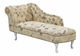 Táto nádherná leňoška je štýlovým doplnkom do akéhokoľvek obytného priestoru a je ideálna do obývacej izby alebo predsiene. Kvalitné čalúnenie so vzorom, ktoré je doplnené ozdobným prešívaním a kovovým lemovaním, je odolné a príjemné na dotyk. Vďaka kombinácii spracovaného dreva a masívu sú nohy a konštrukcia pevné a zaručujú skvelú stabilitu a trvácnosť.
