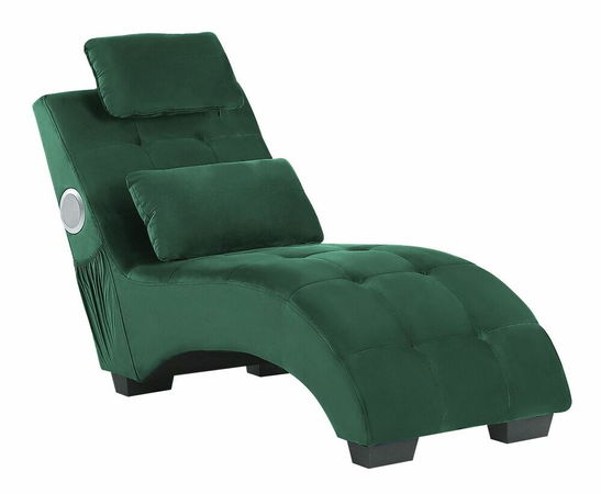 Táto očarujúca leňoška je vynikajúcim riešením pre všetkých, ktorí radi relaxujú pri počúvaní hudby. Zaoblený tvar ponúka pohodlné sedenie a nechýba ani odnímateľný vankúš za chrbát a podhlavník so suchým zipsom. Vďaka vstavanému Bluetooth reproduktoru stačí pripojiť vaše zariadenie a vychutnávať si príjemnú hudbu. Ak sa vaše zariadenie vybije, stačí použiť pohodlný USB port na nabíjanie. Nádherné zamatové čalúnenie s prešívanými detailmi dodáva leňoške moderný a luxusný vzhľad.