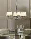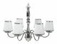Táto elegantná lampa je moderným variantom klasického lustra. Dizajn pozostáva zo šiestich svetiel so svetlými tienidlami vyrobenými z vysokokvalitného akrylu. Sú umiestnené na zaoblenom ráme s lesklou chrómovou povrchovou úpravou. Svietidlo vnesie do predsiene alebo spoločenskej miestnosti glamour nádych a hodí sa do interiérov v modernom i tradičnom štýle.