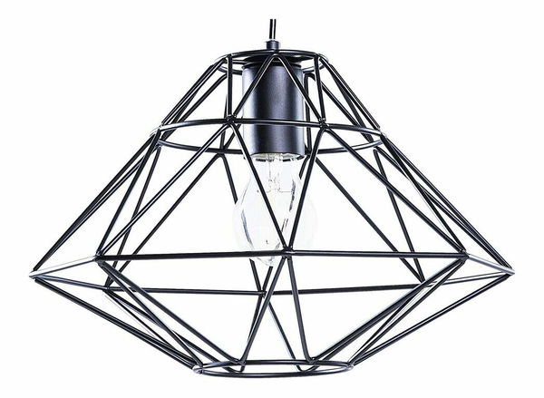Závesná lampa v tvare diamantu s čiernou povrchovou úpravou. Vďaka svojmu geometrickému vzhľadu skvele doplní interiéry v industriálnom alebo modernom štýle. Toto kovové závesné svietidlo nádherne vynikne nad kuchynským ostrovčekom, v jedálni nad stolom alebo v iných obytných priestoroch v minimalistickom dizajne. Túto elegantnú lampu možno použiť samostatne alebo v kombinácii s ďalšími svietidlami.