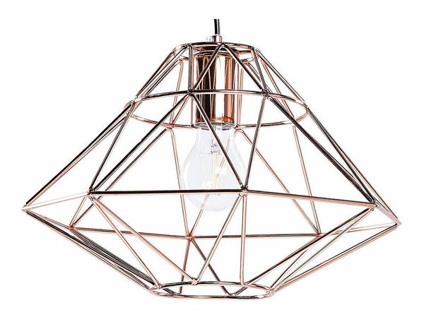 Závesná lampa v tvare diamantu s medenou povrchovou úpravou. Vďaka svojmu geometrickému vzhľadu skvele doplní interiéry v industriálnom alebo modernom štýle. Toto kovové závesné svietidlo nádherne vynikne nad kuchynským ostrovčekom, v jedálni nad stolom alebo v iných obytných priestoroch v minimalistickom dizajne. Túto elegantnú lampu možno použiť samostatne alebo v kombinácii s ďalšími svietidlami.