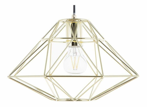 Závesná lampa v tvare diamantu so zlatou povrchovou úpravou. Vďaka svojmu geometrickému vzhľadu skvele doplní interiéry v industriálnom alebo modernom štýle. Toto kovové závesné svietidlo nádherne vynikne nad kuchynským ostrovčekom, v jedálni nad stolom alebo v iných obytných priestoroch v minimalistickom dizajne. Túto elegantnú lampu možno použiť samostatne alebo v kombinácii s ďalšími svietidlami.