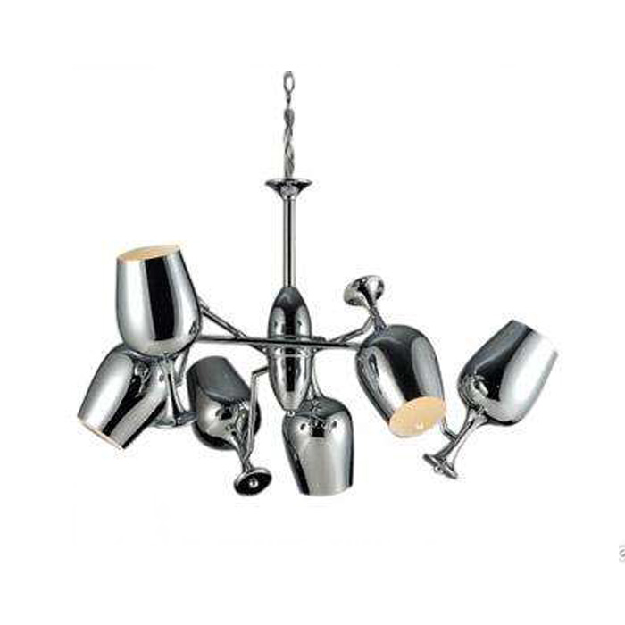 Nádherný luster KM606-6 od značky Signal má moderný dizajn. Luster tvorí kovová konštrukcia v tvaroch pohárov, ktorých je 6 a sú vo farebnom prevedení chrómu.