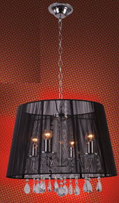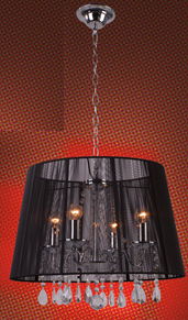 Závesný luster L222 má krásny elegantný dizajn a je vhodný do moderného interiéru. Kovová konštrukcia lustra je v prevedení chrómu a originálne tienidlo je z textilu v kombinácií s čiernym sklom.