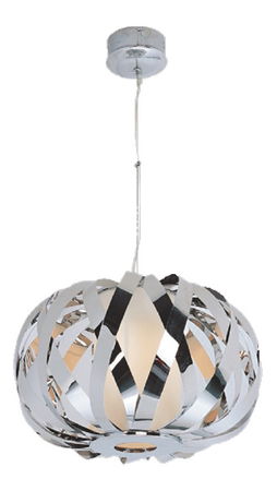 Dizajnový moderný luster LR332 od značky Signal. Luster má konštrukciu tvorenú kovovými pásmi, ktoré vytvárajú oválny tvar lustra, luster je vyrobený z kovu vo farebnom podaní chrómu a zo skla.