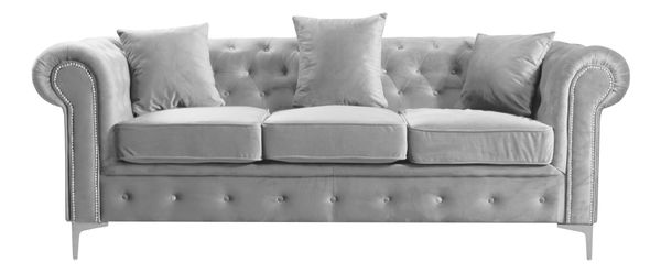Na kovových nožičkách, Celočalúnený, Noblesný, Luxusný, Chesterfield, Prešívaný, Dekoratívne gombíky, Dodávaný s tromi vankúšmi, Sedacia časť so suchým zipsom