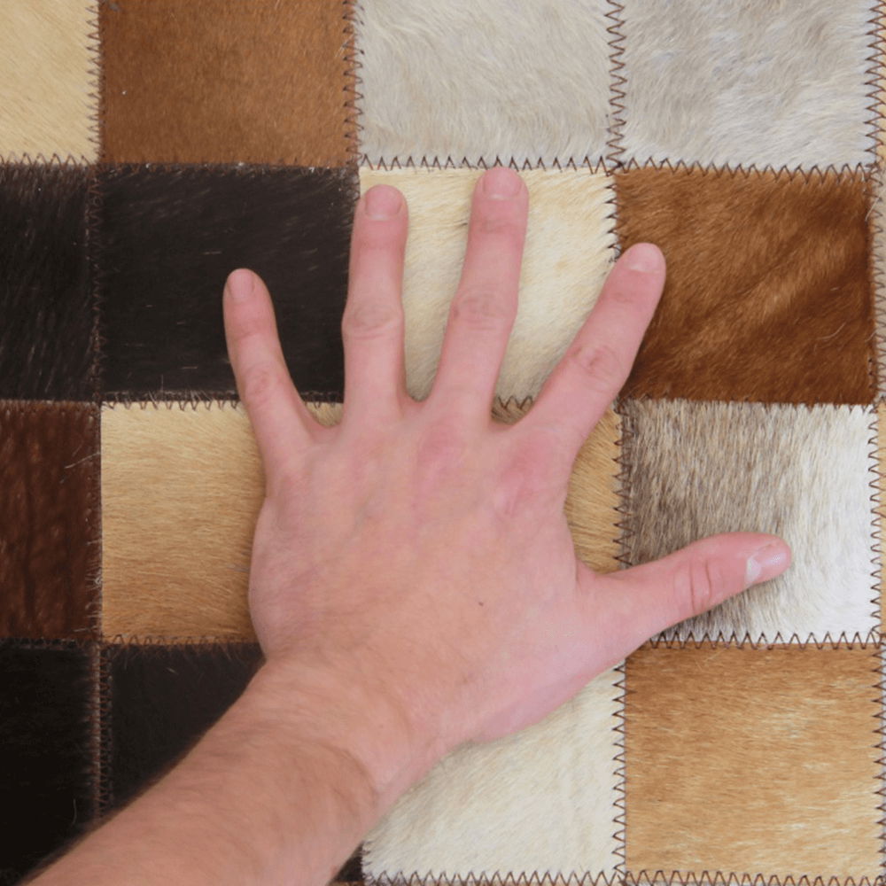 ZobraziťLuxusný kožený koberec typu Kazuko s rozmermi 170x240 cm a výškou 83 cm a hĺbkou 58 cm. Tento koberec je vyrobený z hovädzej kože a plsti, ktoré sú prírodnými materiálmi a disponujú vynikajúcimi vlastnosťami. Hovädzia koža je veľmi odolný materiál, ktorý si uchováva svoju krásu mnoho rokov a prispôsobuje sa klimatickým podmienkam v interiéri. Tento koberec je podšitý plsťou, ktorá má vynikajúce izolačné vlastnosti a pružnosť. Výhodou tohto materiálu je tiež jeho schopnosť odizolovať od hluku a neviazať prach. Tento koberec je zdobený technikou patchwork, kde sú použité kusy kože o veľkosti 5x5 alebo 8x8 cm. Koberec je viacfarebný a vzhľadom na použitie prírodných materiálov, môže sa vyskytnúť určitá variabilita farieb a textúr.