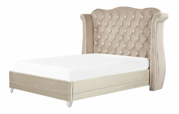 Táto elegantná posteľ premení každú spálňu na luxusne zariadený priestor. Rám postele s vysokým čelom je čalúnený zamatovou látkou, ktorú dopĺňa klasické prešívanie. Vďaka svojmu dizajnu je dokonalým kusom nábytku do spální zariadených v elegantnom alebo tradičnom štýle. Okraje postele zdobí kovové lemovanie a lamelový rošt ponúka stabilnú oporu matracu a zabezpečuje správne prúdenie vzduchu.