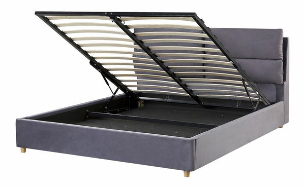 Táto elegantná posteľ s moderným dizajnom má rám s vysokým čelom a veľký úložný priestor. Vďaka obdĺžnikovému tvaru pôsobí tradičným dojmom, ale hrubé operadlo s hrubými vankúšmi jej dodáva moderný šmrnc. Štíhle, ale pevné a odolné nohy neodvádzajú pozornosť od elegantného dizajnu a zabezpečujú stabilitu konštrukcie. Posteľ je čalúnená sivou zamatovou látkou, ktorá zvýrazňuje jej sofistikovaný a pútavý vzhľad.