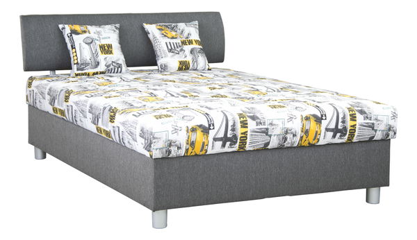 Moderná manželská posteľ s čalúneným čelom a kvalitným elastickým PUR matracom ALENA uloženým na lamelovom rošte. Zahrnutý je aj úložný priestor, ktorý je prístupný od nôh.