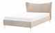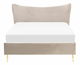 Táto štýlová moderná posteľ dodá vašej spálni trendový a elegantný vzhľad. Rám a vysoké čelo sú čalúnené na dotyk príjemnou zamatovou látkou v nádhernom odtieni béžovej farby. Tenké zlaté nohy podčiarkujú celkový dizajn a čalúnenie postele, zatiaľ čo drevený lamelový rošt zlepšuje pohodlie počas spánku.