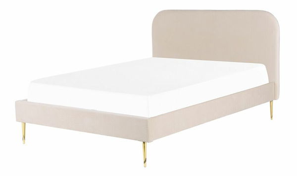 Zvýraznite vzhľad svojej spálne s touto štýlovou posteľou s minimalistickým dizajnom. Béžové zamatové čalúnenie je nielen príjemné na dotyk, ale aj odolné a trvácne. Posteľ sa vďaka svojmu prevedeniu stane skvelým doplnkom vašej spálne. Lamelový rošt vyrobený z masívneho dreva zabezpečuje dobrý spánok a správne rozloženie telesnej hmotnosti. Celá konštrukcia je doplnená zlatými nohami, ktoré zaručujú stabilitu nábytku.