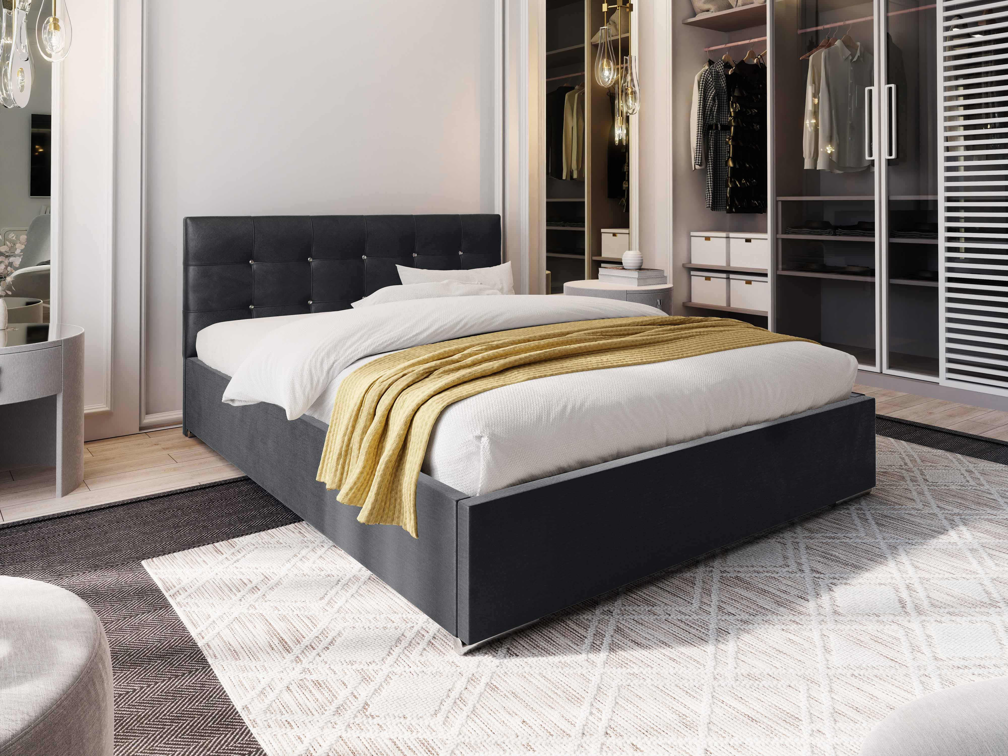 Manželská posteľ Lonnie s čiernym plastovým čelom a zapošitými gombíkmi má 140x200 cm a je vybavená roštom a úložným priestorom na posteľnú bielizeň. Tkanina Monolith 97 je testovaná na odolnosť a rám je vyrobený z kombinácie drevotriesky a dreva. Posteľ je vhodná pre matrac s výškou 10 cm a pružinou bonell. Úložný priestor na posteľnú bielizeň má mechanizmus na otváranie a maximálne zaťaženie je 240 kg. Posteľ je dodávaná v troch balíkoch s rozmernými informáciami. Matrac si môžete vybrať a priobjednať z nášho internetového obchodu.