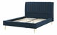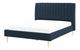 Elegantná posteľ v modernom štýle s vysokým a hrubo vystužený operadlom. Klasický obdĺžnikový tvar postele dopĺňa prešívané čelo, ktoré posteli dodáva moderný vzhľad. Nohy sú perfektne vyvážené a neodvádzajú pozornosť od elegantného dizajnu, ale zaisťujú silnú, pevnú a odolnú konštrukciu. Celá posteľ je čalúnená tmavomodrým zamatom, ktorý jej dodáva sofistikovaný vzhľad.
