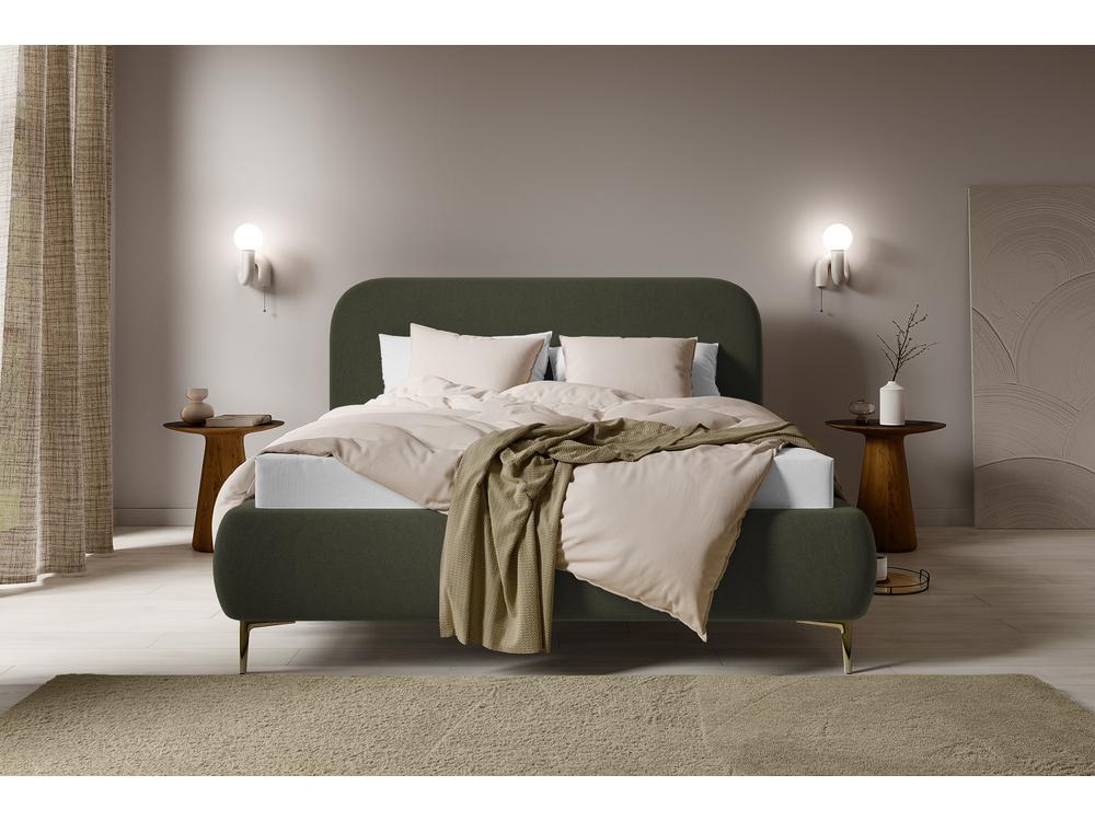 Oceňujete originálne formy v interiéroch? Vyberte si čalúnenú posteľ, ktorá púta pozornosť originálnym, zaobleným tvarom čela. Čelo postele, rovnako ako celá posteľ, je čalúnené jemnou zamatu látkou, takže okrem štýlového vzhľadu je ako stvorené na večerné čítanie či nedeľné raňajky do postele a poskytuje pohodlnú oporu vášmu chrbtu. Základom celku sú vysoké drevené nohy, poskytujúce stabilnú oporu konštrukcii Detaily produktu: plocha na spanie: 140/200 cm farba nôh: zlatý drevený rám drevené nohy sa vyznačujú vysokou odolnosťou a stabilitou, posteľ potiahnutá látkou Castel 39 in. olivová farbaCastel je mäkká, hladká tkanina vyznačujúca sa vysokou odolnosťou proti treniu, oderu a žmolkovaniu, vďaka čomu je ideálna pre každodenný nábytok. Ďalšou výhodou je Easy Clean Technology - materiál sa ľahko čistí, čo umožňuje jednoduché odstránenie nečistôt s trochou vody a mäkkou handričkou.