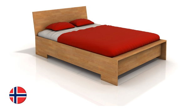Posteľ Lekanger High vyrobená z masívneho bukového dreva má výšku až 69 cm. Aj keď je dizajn drevenej postele jednoduchý, určite ju nikto neprehliadne. Model Lekanger High je vyšší ako štandardný model a vďaka tomu sa vám bude z postele ľahšie vstávať aj si do nej líhať. Z postele môžete pohodlne sledovať televíziu, čítať si pred spaním alebo vychutnávať raňajky do postele. Posteľ Lekanger High vám bude slúžiť niekoľko rokov, pretože , ktoré zabezpečujú pevnosť konštrukcie. V strede postele sa nachádza . Tento nosník má tvar "T" a vodorovná časť je upevnená k prednej a zadnej časti postele zatiaľ čo zvislá časť podopiera celok. Zosilnenie konštrukcie a podporu matraca zabezpečuje .Posteľ Lekanger High je a najmenším možným počtom uzlov na vonkajšej strane. je ošetrené dvoma vrstvami laku, takže je odolné voči poškriabaniu. Laky a moridlá majú potrebné certifikáty a atesty.K posteli Lekanger High . Ak chcete použiť alebo zakúpiť taštičkový matrac je vhodné zakúpiť aj lamelový rošt s dvojnásobnou hustotou, ktorý je dostupný za príplatok. Predĺžite tak životnosť taštičkového matraca.