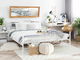 Doprajte si maximálne pohodlie počas spánku, ktoré vám poskytne táto posteľ s rámom inšpirovaným retro štýlom. Je vyrobená z vysokokvalitného kovu a natretá klasickou bielou farbou, vďaka ktorej ju možno skombinovať s akoukoľvek farbou zariadenia v spálni. Skvelú oporu chrbtici poskytujú pružinové lamely z odolného topoľového dreva. Posteľ, ktorá má dekoratívne čelo a rám pri nohách so zložitými ornamentmi a prvkami, sa stane štýlovým retro stredobodom akejkoľvek spálne.
