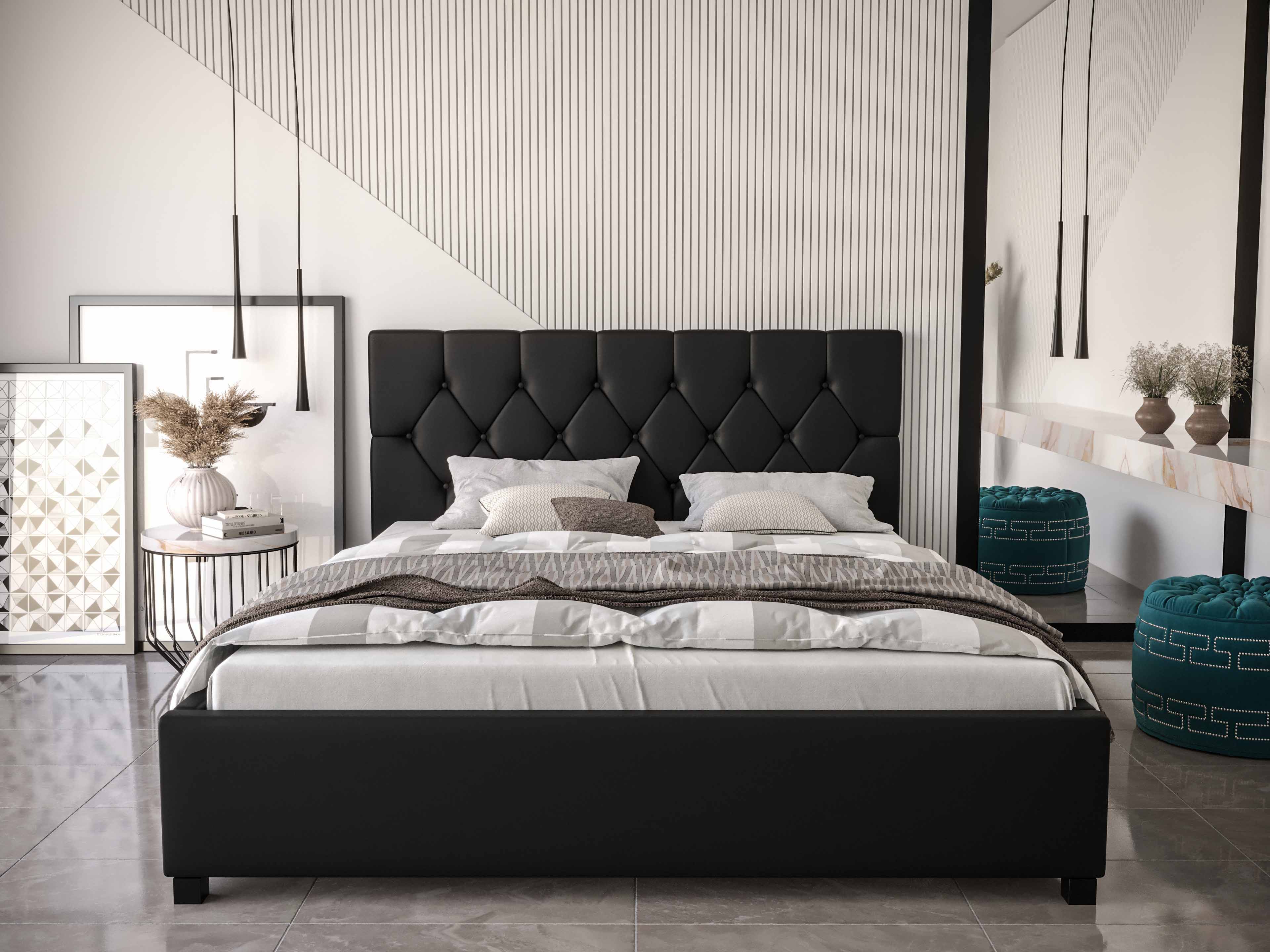 Manželská posteľ 140 cm Sylvie (čierna) (s roštom a úložným priestorom)