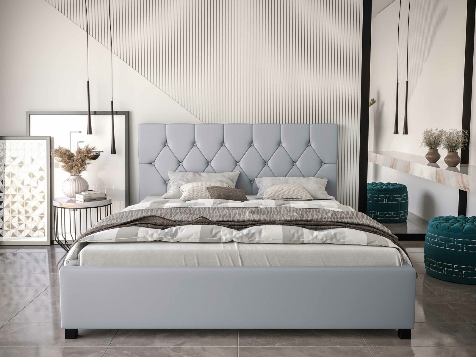 ZobraziťManželská posteľ 140 cm Sylvie (sivá) je postel s vysokým tvarovaným čelom a úložným priestorom pre posteľnú bielizeň. Rám postele je vyrobený z kombinácie drevotriesky a dreva. Tkanina Sierra 1132 je umelej kože a s vzhľadom prírodnej kože. Úložný priestor je vybavený mechanizmom na otváranie. Posteľ je dodávaná s roštom a matrac si môžete vybrať a priobjednať z nášho internetového obchodu. Maximálne zaťaženie postele je 240 kg a postel je k dispozícii v niekoľkých farebných a rozmerových variantoch.