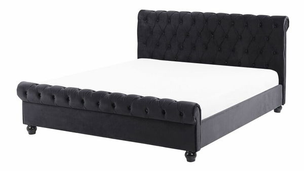 Vylepšite svoju spálňu touto jedinečnou luxusnou posteľou. Elegantne zaoblené čelo a nízka časť pri nohách dotvárajú štýlovú siluetu rámu. Posteľ je čalúnená jemnou čiernou zamatovou látkou, ktorá je nenáročná na údržbu a príjemná na dotyk. Ozdobné prešívanie s okrúhlymi gombíkmi dokonale dopĺňa dizajn tohto výnimočného kusu nábytku. Táto posteľ je ideálna do interiéru v modernom, retro a vintage štýle a vynikne aj v spálniach zariadených v tradičnom anglickom štýle.
