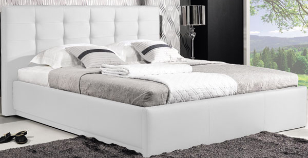Moderná manželská posteľ svojim dizajnom spraví z Vašej spálne luxusný priestor. Je vyrobená z kvalitnej bielej ekokože. Na čelách je vzorovane prešitá. Plocha lôžka je 160 x 200 cm.