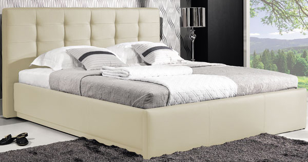 Moderná manželská posteľ svojim dizajnom spraví z Vašej spálne luxusný priestor. Je vyrobená z kvalitnej krémovej ekokože. Na čelách je vzorovane prešitá. Plocha lôžka je 160 x 200 cm.