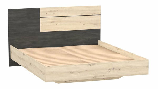 Manželská posteľ 160 cm - Barca (dub artisan + borovica nórska čierna) s výškou 100 cm a šírkou 170 cm. Dub artisan + Borovica nórska čierna. Hĺbka 205 cm. Táto manželská posteľ v modernom štýle ponúka jednoduchú eleganciu a je navrhnutá pre váš komfort a stabilitu. Je vyrobená z 16 mm hrubej drevotriesky, čo zaručuje jej pevnosť. ABS hrany s hrúbkou 0,5 mm zabezpečujú odolnosť a kvalitný vzhľad. Tento model neobsahuje úložný priestor, rošt ani matrac, čo vám umožňuje osobne si vybrať matrac podľa vlastných preferencií s rozmermi 200x160 cm.
