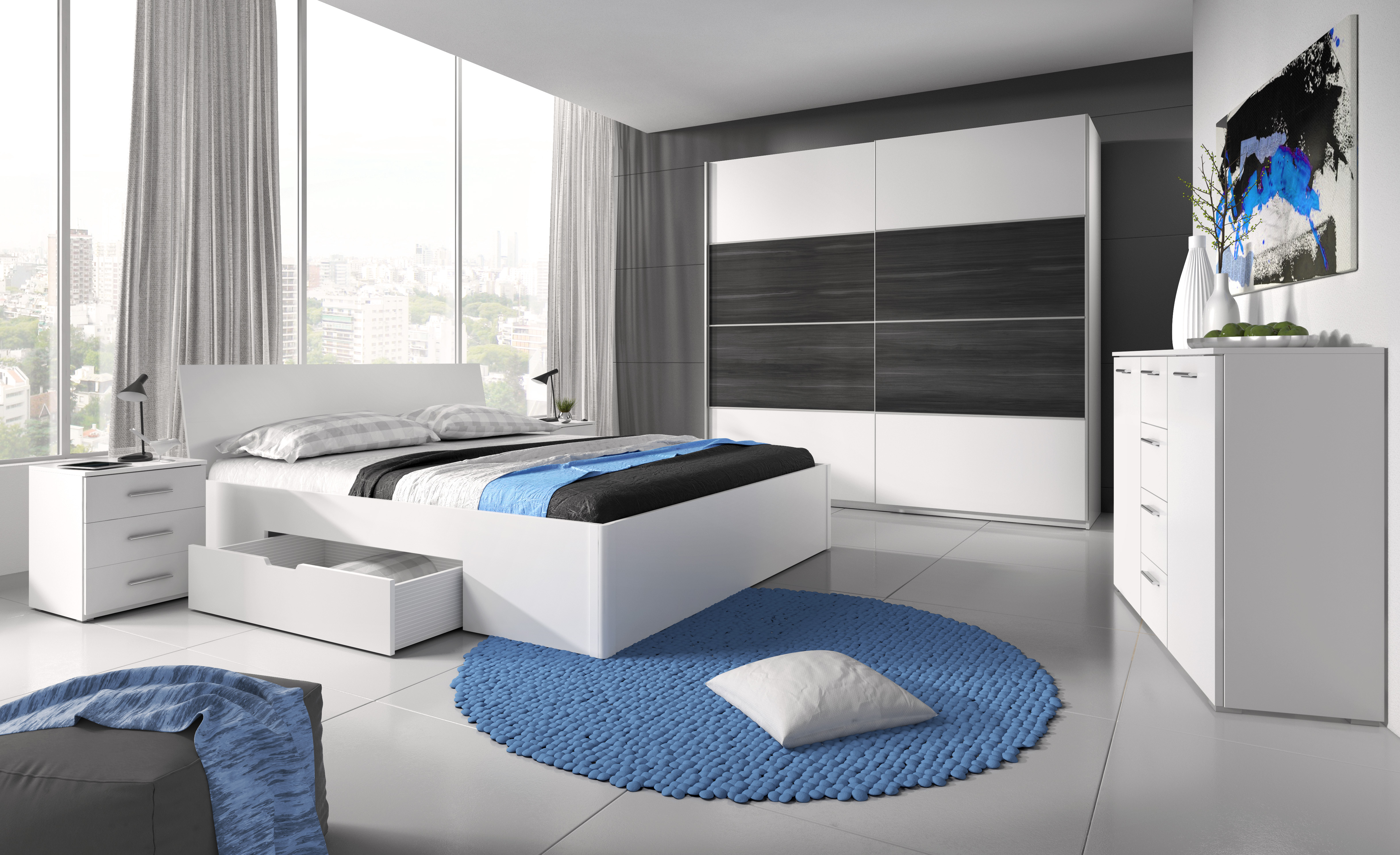 Nádych prírody do spálne Vám prinesie práve tento modelový rad. Kombinácia farby dreva s matnou farbou pôsobí útulne. Do takto zariadenej spálne budete s radosťou chodiť spat. Modelový rad ponúka trojdielnu komodu, manželskú posteľ v dvoch rozmeroch, nočné stolíky a priestrannú šatníkovú skriňu.