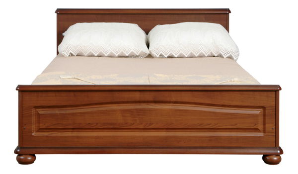 Manželská posteľ rustikálneho charakteru s ozdobne vyrezávaným čelom a širšími guľatými nožičkami. Bude veľmi pekným doplnkom vašej spálne.