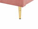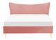 Táto štýlová moderná posteľ dodá vašej spálni trendový a elegantný vzhľad. Rám a vysoké čelo sú čalúnené na dotyk príjemnou zamatovou látkou v nádhernom broskyňovom odtieni ružovej farby. Tenké zlaté nohy podčiarkujú celkový dizajn a čalúnenie postele, zatiaľ čo drevený lamelový rošt zlepšuje pohodlie počas spánku.