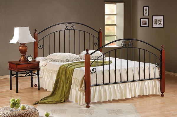 Pekná posteľ Dakota si Vás získa svojim vysokým konštrukčným riešením, ktorý ju odlišuje od ostatných posteľí podobného typu. posteľ má drevenú konštrukciu vo farbe antickej čerešne a kovové prvky sú v čiernej farbe.