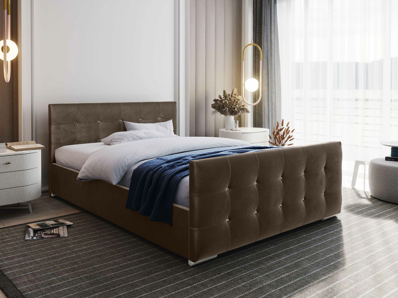 ZobraziťManželská posteľ Darrin v hnedej farbe s roštom a úložným priestorom je pohodlná, kvalitná a elegantná posteľ pre kvalitný spánok. Posteľ je vyrobená z kombinácie drevotriesky a dreva a je dodávaná s roštom a úložným priestorom na posteľnú bielizeň. Tkanina Monolith 15 je odolná plyšová látka s hydrofóbnou vrstvou, ktorá chráni pred rýchlym vstrebaním rozliatych tekutín. Posteľ sa ponúka v niekoľkých farebných a rozmerových variantoch. Matrac nie je súčasťou produktu, ale je možné si ho vybrať a priobjednať z nášho internetového obchodu.