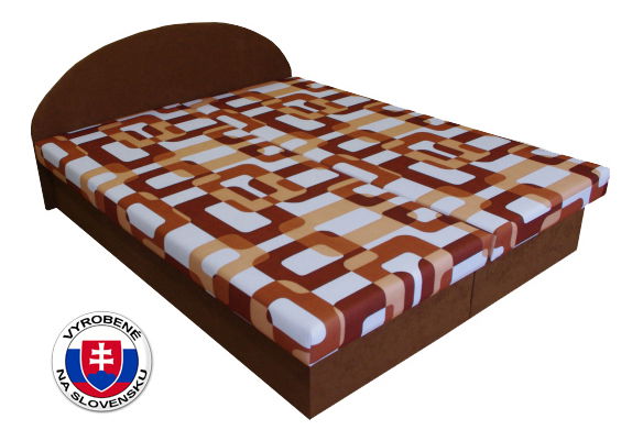 Manželská posteľ v neutrálnej hnedej farbe čela a spodnej časti a s moderným vzorovaním spacej časti sa hodí do každej spálne. Po bočnom odklopení spacej časti, ktorá je vyrobená z PUR peny a potiahnutá bavlneným čalúnením, sa Vám naskytne pohľad do priestranného úložného priestoru.