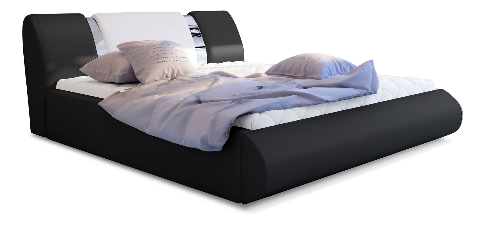 ZobraziťLuxusná manželská posteľ FABIO s výrazným farebným kontrastom čiernej a bielej farby na čele postele a oblé okraje pôsobí útulne a extravagantne. Posteľ je vyrobená z prvotriednych materiálov a je celočalúnená kvalitnou ekokožou. V cene postele je zahrnutý aj výklopný drevený rošt s pružinovým zdvihákom a úložný priestor na posteľnú bielizeň, dieky alebo vankúše. Výška postele bez čela je 32 cm a plocha na spanie je 160x200 cm. Posteľ je dodávaná s latovým roštom, ale bez matraca. Doporučený matrac je pružinový alebo taštičkový matrac.
