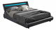 Manželská posteľ 160 cm Filina je elegantná a moderná posteľ s čiernou ekokožou a rozmierami 175x220x88 cm. Posteľ má plochu na spanie 160x200 cm a výšku po rošte 21,5 cm. Je vybavená lamelovým roštom a RGB LED osvetlením, ktoré umožňuje prepínať medzi niekoľkými farbami. Posteľ má oble tvary a dodáva sa bez matraca, ale je možné dokúpiť matrac. Posteľ sa dodáva v demonte.
