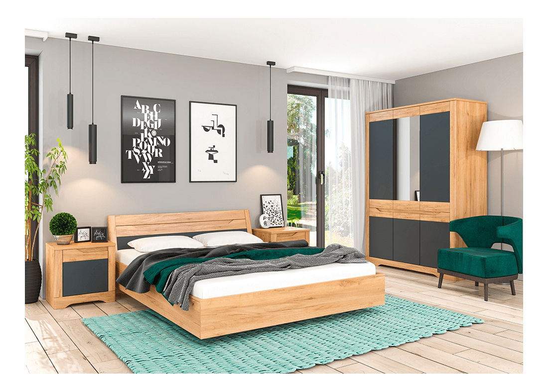 Manželská posteľ 160 cm Fistrea výška 82 cm hĺbka 207,8 cm v dub craft zlatej a grafitovej farbe je vyrobená z kvalitného DTD laminátu a dverí z MDF. Posteľ má štýlový dizajn a príjemnú farbu, ktorá sa hodí do akejkoľvek izby. Rozmery sú 166,8x207,8x82 cm a má plochu na spanie 160x200 cm. Materiál je hrubý 16 mm a dodáva sa bez matraca a roštu. Táto posteľ je skvelou voľbou pre tých, ktorí hľadajú kvalitu a štýl za prijateľnú cenu.