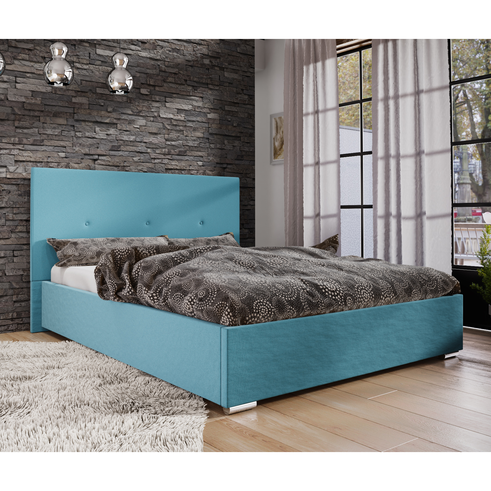 Čalúnenú posteľ Foxxie si viete zakúpiť v rôznych rozmeroch. Vďaka možnosti viacerých farebných prevedení bude vhodná do každej spálne. Vysoké čelo dodá posteli mohutnosť. Prešívanie čelo postele je elegantné a jemné.