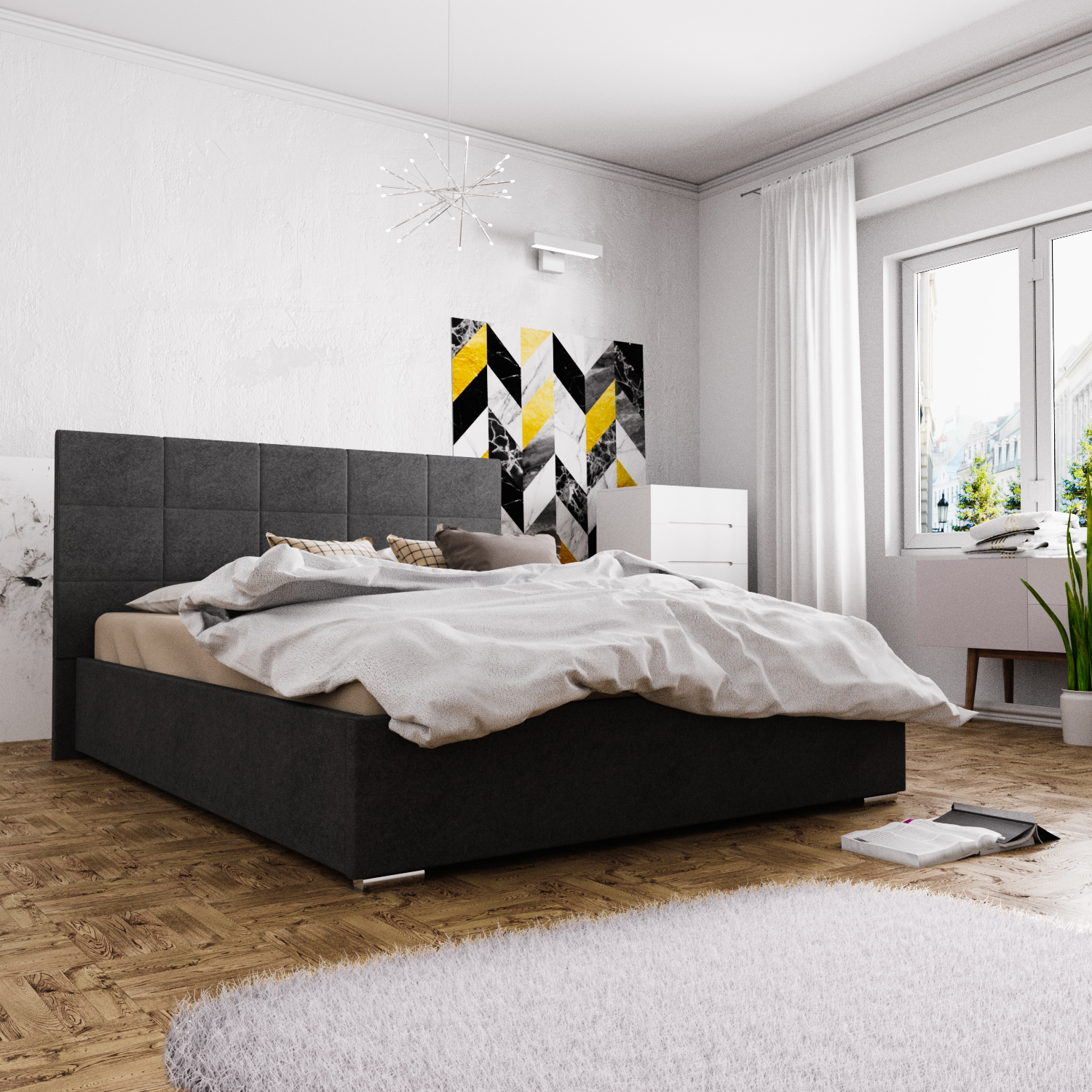 Čalúnenú posteľ Foxxie si viete zakúpiť v rôznych rozmeroch. Vďaka možnosti viacerých farebných prevedení bude vhodná do každej spálne. Vysoké čelo dodá posteli mohutnosť. Prešívanie čelo postele je elegantné a jemné.