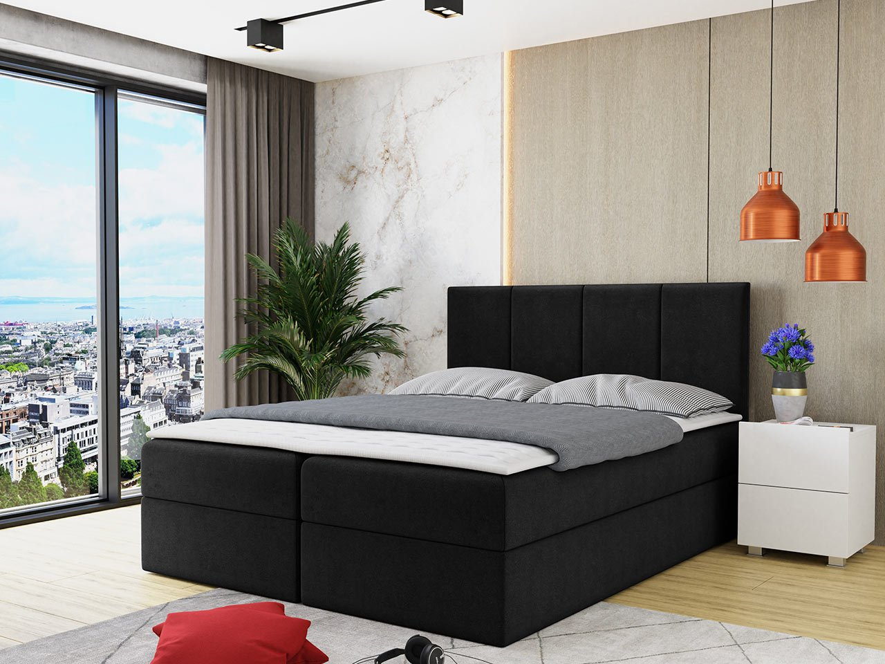 Kontinentálne postele sa považujú za jednu z najpohodlnejších, pretože majú zložitú štruktúru, kde každá vrstva má priradenú funkciu. Spodnou vrstvou je úložný priestor na náhradnú posteľnú bielizeň, ktorý dodatočne zdvihne posteľ, čo uľahčuje každodenné vstávanie. Druhou vrstvou kontinentálneho lôžka je pružinový matrac, ktorý je zodpovedný za správnu podporu tela počas spánku. Poslednou vrstvou postele je penový matrac, tzv topper, ktorý sa stará o pohodlie a komfort odpočinku. Ďalšou výhodou postele je vysoké čalúnené čelo postele, ktoré má dekoratívnu a praktickú funkciu. Pri čítaní kníh alebo pozeraní televízie sa radi opriete o mäkký chrbát.