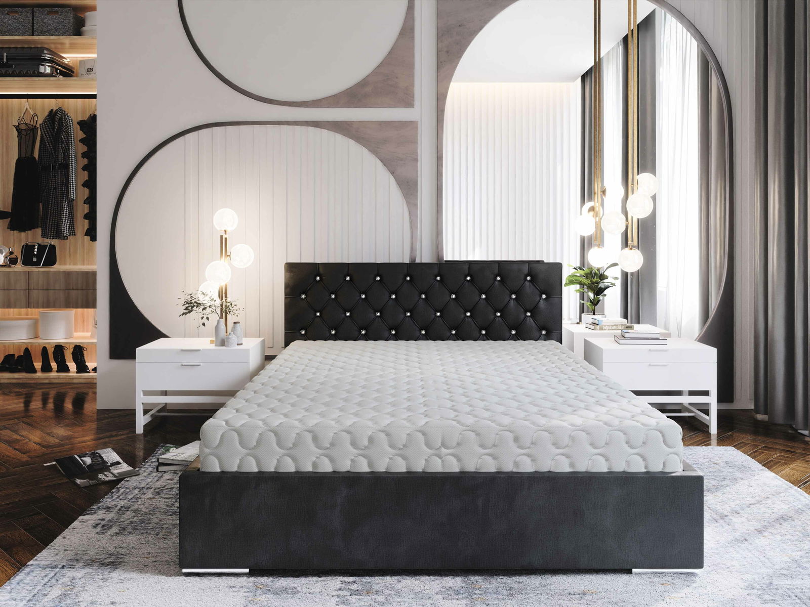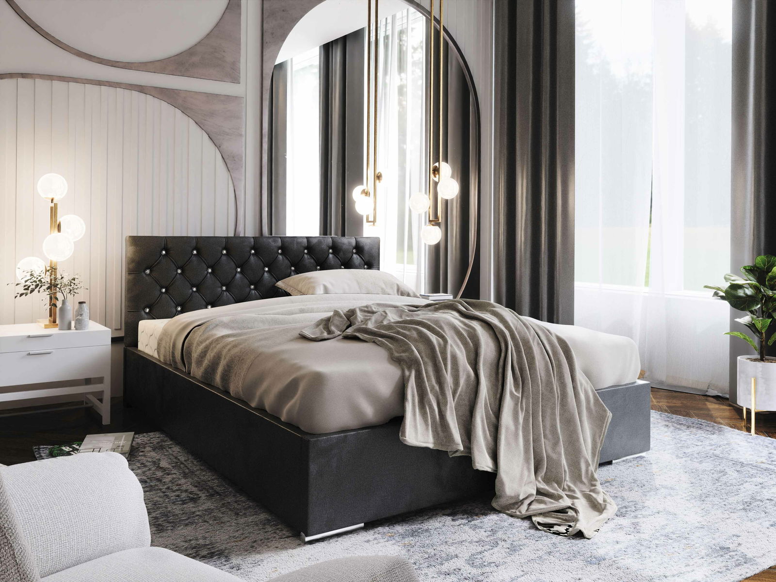 ZobraziťManželská posteľ 160 cm Kerry (čierna) s roštom a úložným priestorom je moderná posteľ s dekorom v tkanine na vysokom čele postele. Vnútri postele je rošt aj úložný priestor na posteľnú bielizeň. Posteľ je k dispozícii v niekoľkých farebných aj rozmerových variantoch. Rám je vyrobený z kombinácie drevotriesky a dreva. Posteľ má výšku čela 115 cm a dĺžku 210 cm. Maximálne zaťaženie je 240 kg. Posteľ je dodávaná s roštom a matrac si môžete vybrať a priobjednať z nášho internetového obchodu.