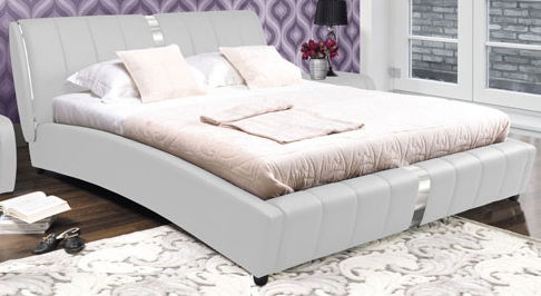 Luxusná manželská posteľ s moderným dizajnom skvele oživí priestor Vašej spálne. Je vyrobená z bielej ekokože. Na čelách má ozdobný pás striebornej farby. Plocha lôžka je 160 x 200 cm.