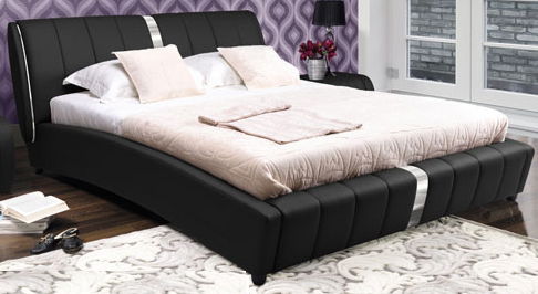 Luxusná manželská posteľ s moderným dizajnom skvele oživí priestor Vašej spálne. Je vyrobená z čiernej ekokože. Na čelách má ozdobný pás striebornej farby. Plocha lôžka je 160 x 200 cm.